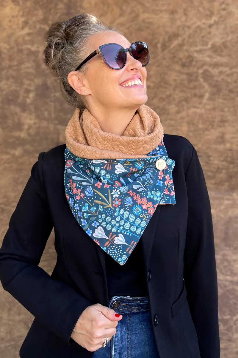 עדי בקשי צעיף שירלי חום כחול פרחים